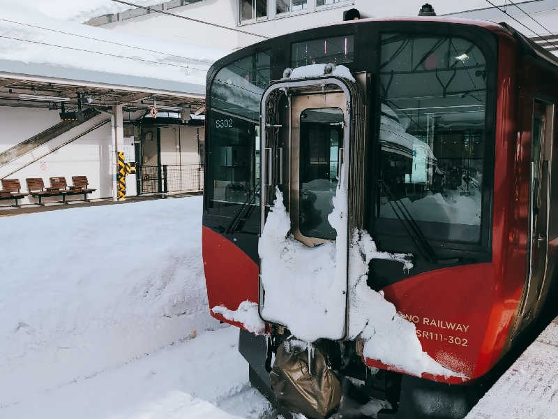 長野駅までは少しも雪はなかったが、北しなの線で黒姫駅に向かうにしたがって、どんどん車窓の外は雪景色に☃️
