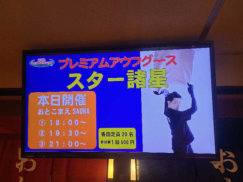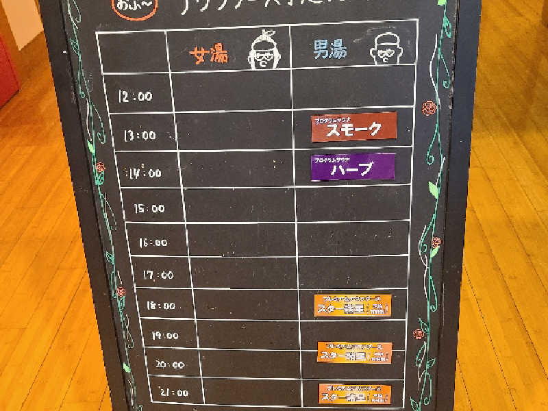 サウナ:おとこまえ10、ありがとう8、ツチコさんアウフ10、ありがとうクリスタル7分、初波さん熱波10、ありがとう8分、ナカヤママネージャーアウフ12