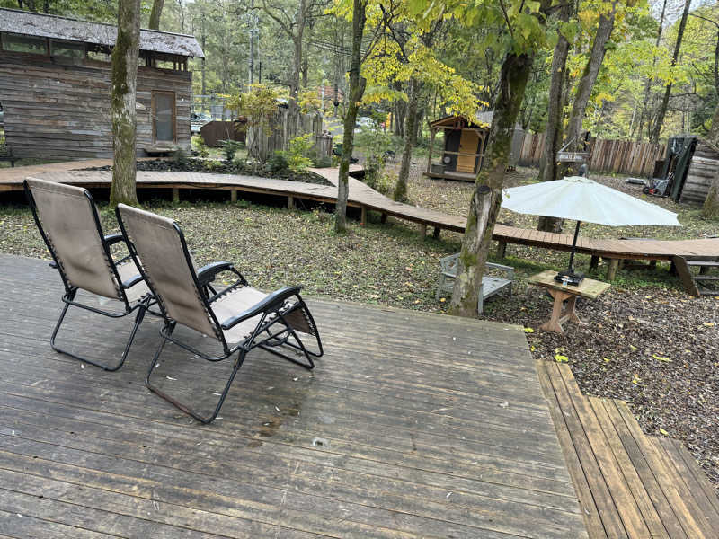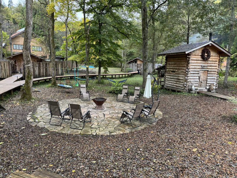 森に囲まれながらインフィニティチェアに座っていると、不思議なくらい落ち着く。水風呂に流れ込む水の音音もまた良き。