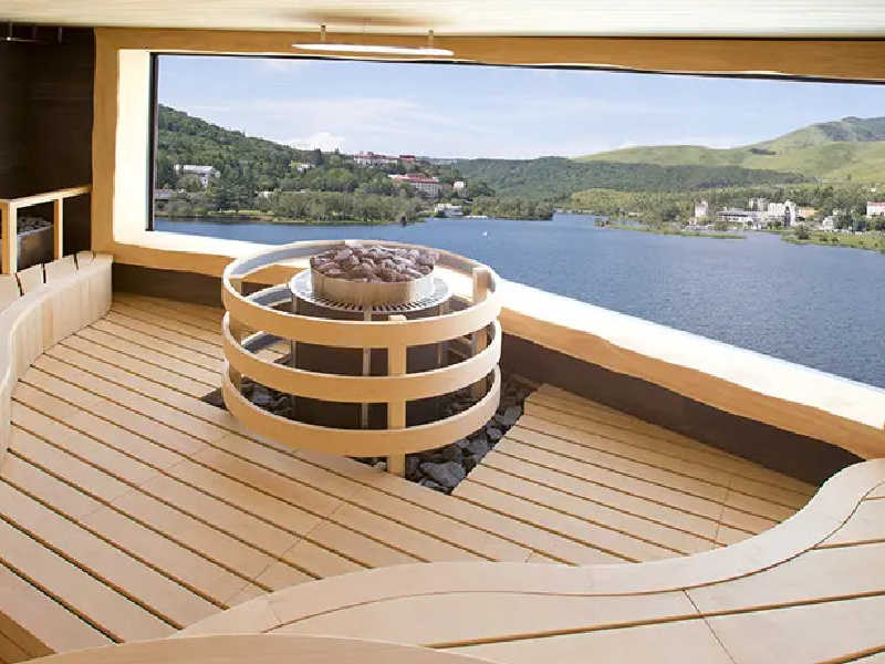 湿度で熱いサウナの外気浴はリラックスタイムに。