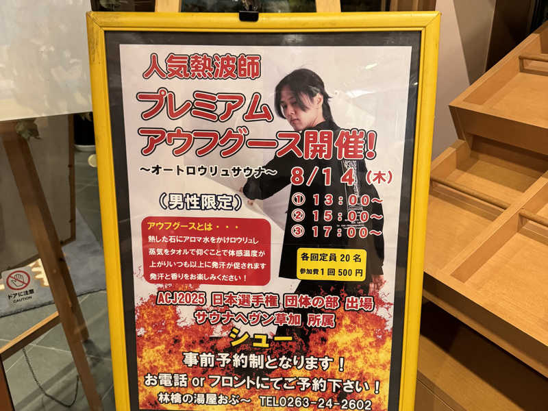 そして脱衣所前の看板に目をやると…なんと!ゲリラアウフグース開催の告知が⁉️