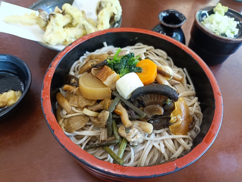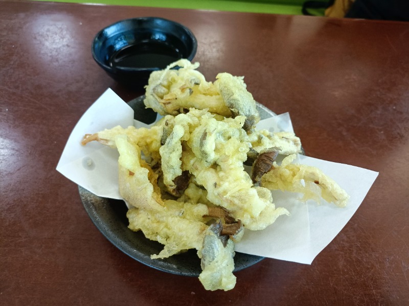 サウナの前に、お昼にしましょう。小諸の「草笛」さんで信州蕎麦を頂く。山菜ざるそばを大盛りと茸の天ぷらを注文したら、すごい量が出てきて嬉しい悲鳴でお腹いっぱいになっちゃいました。クルミのおはぎも追加して、山の恵みをたっぷりと堪能して腹を落ち着かせてから、いざ出陣。