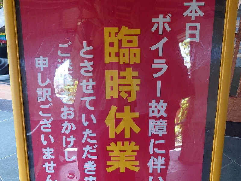 昼ごはん食べて休憩エリアで寝ていたら、ボイラー故障につき臨時休館します、との案内が……。