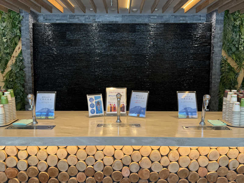 あと、湯上りラウンジのアイランドカウンターには伏流水のサーバーが。真ん中の伏流炭酸水がペットボトルに詰めて帰りたいくらい美味しかった🥹