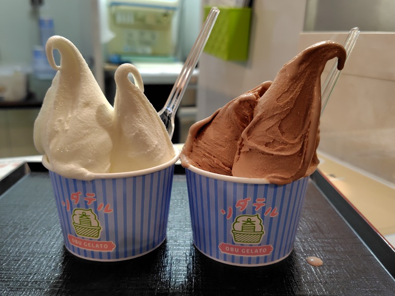 11:00〜12:30頃までひたすら繰り返して、連れとの待ち合わせ時間前にジェラートアイスを食べるべく、浴場から上がりました。