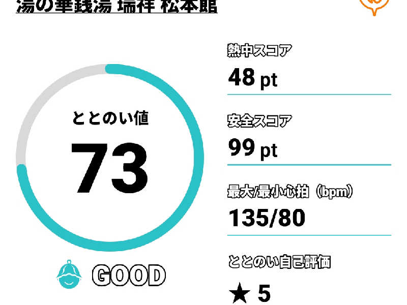 初訪問。長野遠征その2。高温サウナ94℃x1、低温サウナ56℃x2。水風呂良すぎ。風優しく大昇天。