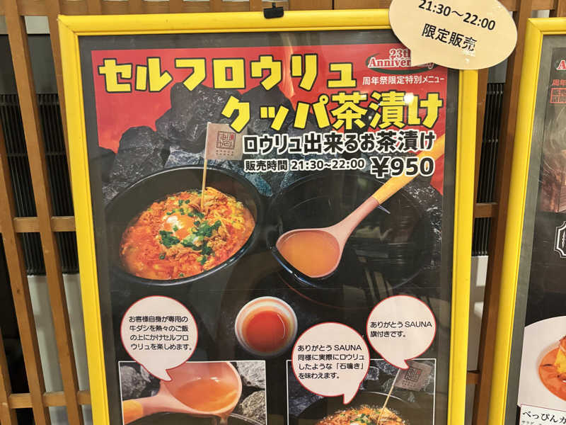 周年祭限定特別メニューのセルフロウリュクッパ茶漬けをいただきました😋🍴