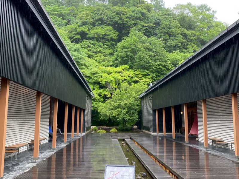 佐久市体育館のジムに近いので、最近はジム後に汗を流しに来ることが多い。小雨の外気浴も悪くないよね。