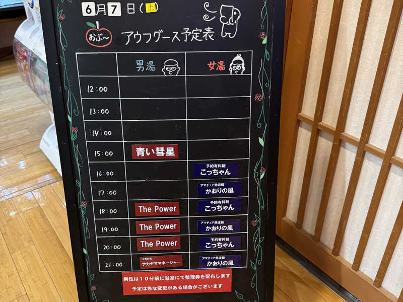 明日は男性はスタッフさんの熱波、女性はゲスト熱波があるので皆さん是非参加しましょう!僕も時間があれば午後から参戦できそうです‼️