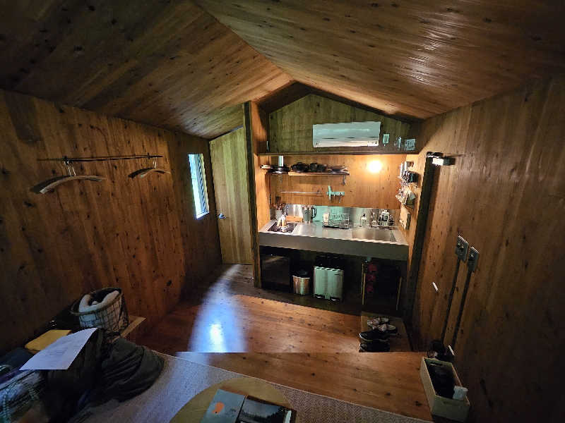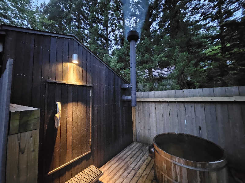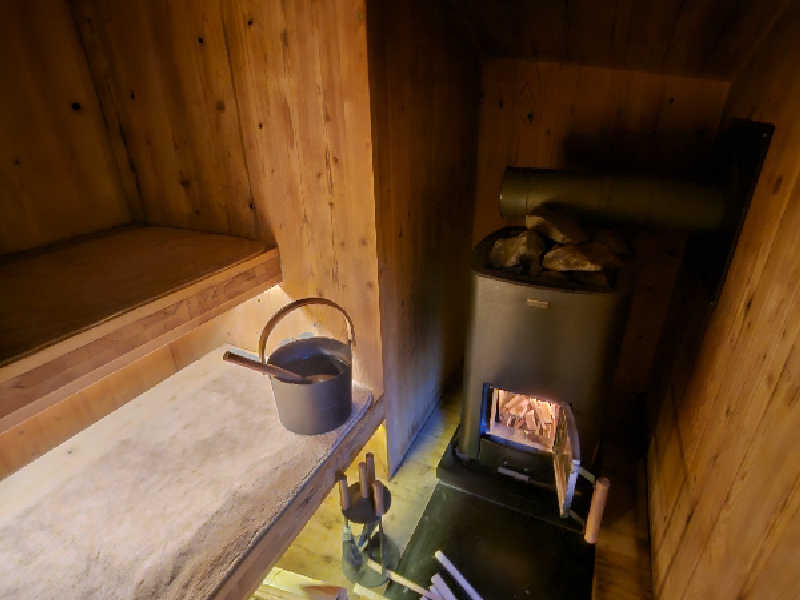 サウナ小屋は薄暗くて雰囲気完璧、天井も低くてロウリュする度に爆アツの蒸気が襲いかかってきました🤣