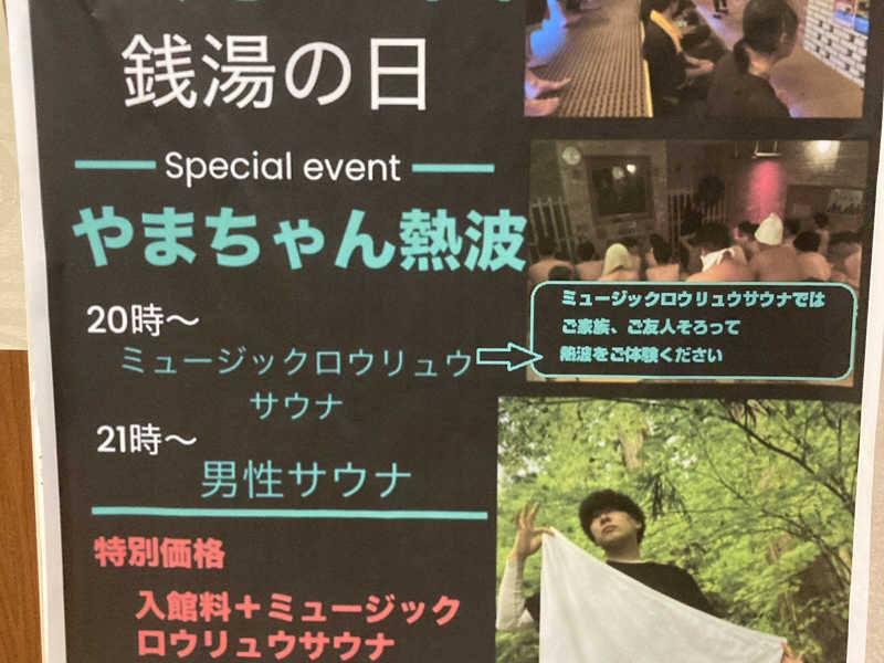 本日は支配人のレッドウィングテツさんの熱波イベントが20:00と21:30にあるとサ室扉に告知ありました!が…時間合わず参加は叶わず😢またの機会に👋