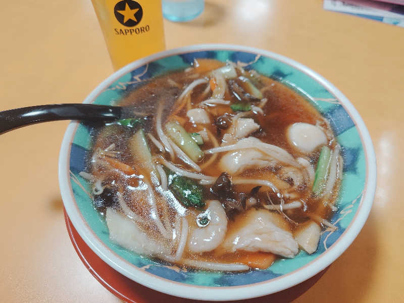お休みの今日は昼前から『信州健康ランド』さんへ行きチェックイン&サ活‼️で御座います🕺昼の部は美味しい麦酒を飲むため計5回のサ活‼️を行い汗カキカキ&喉カラカラ状態まで持っていきました🫠サ室はかなり熱く良かったのですが、今日は曇っていて外気が寒い🥶中華料理「樹林」さんで昼を食べ休憩し『信州健康ランド』夜の部へ···。夜の部ですが時間帯的にかそれなりに混み始めサ室もまぁまぁの入具合です🫡ただ、夜の外気が昼より寒く短めの外気浴でもうちょい外でまったりしたかったなぁ〜と思う私でした🥴計4回の夜サ活‼️を行い今日1日フィニッシュで御座います🕺昼夜合計9セット🫰大変満足な休日で御座いました、『信州健康ランド』さん有難うございました🙂↕️写真は施設内の中華料理「樹林」さんで昼食べた「ミニ五目ラーメン」で御座います、具沢山のあんかけラーメン、ミニでも旨し🥰皆さんも是非🫡