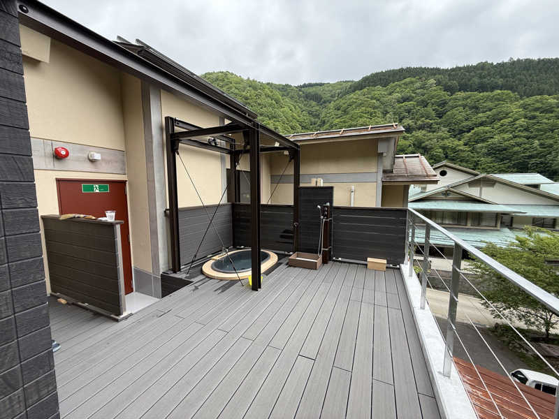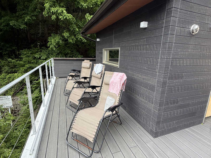 外気浴🍃は露天エリアの横にデッキがあり椅子🪑が2つ 屋根があるので雨でも濡れることはありません🍀