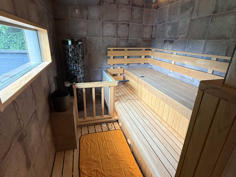 全体的に広い構成 清潔感はピカイチですが ストーブ🔥だけが... ここにお金をかけて欲しい!!どこのホテルサウナも宿泊者限定なのでとりあえずサウナみたいな所が多く残念に思いました💦