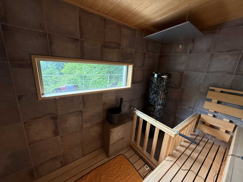 本日は軽井沢に来ました🚗³₃コチラに宿泊です🏨 当然サウナ🔥はあります✨ 森林に囲まれたホテルは相当立派です‼️ お部屋も広くて清潔✿゚❀.゚✿ 浴室も広いです👍 いい香りもします🌸 浴室内 内湯♨️は2つ 岩風呂だけが温泉♨️のようです 水風呂🚰 サ室も思ったより広めで下段6名 上段4名 最大10名ぐらいは入れそうです💦 水風呂はサ室の正面にあり 入りやすい温度 温度計はないので正確にはわからないけど 多分19℃ぐらい 外気浴の椅子🪑は2つ 荷物置き場 サウナハットを掛けるフック🪝はありません😢 ビート板は10枚ぐらいあり 給水器は脱衣所にあり サ室🔥水風呂🚰からは少し遠いです