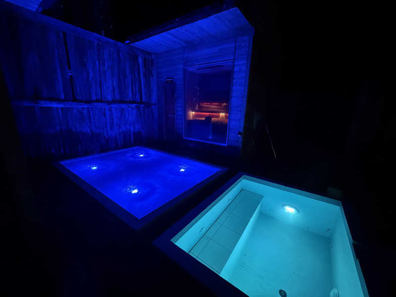 水風呂🚰はチラーはなく 水位が落ちるとスロープみたいな所から水が流れます🚰