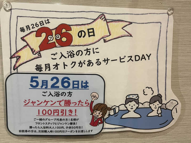 本日26日フロの日は長野来ました〜パスポート使って330円!フロの日ということでじゃんけんに勝てばさらに100円引き!というところでしたが負けました笑北投石が入ってる温泉でカラダはポッカポカです!また来ます!