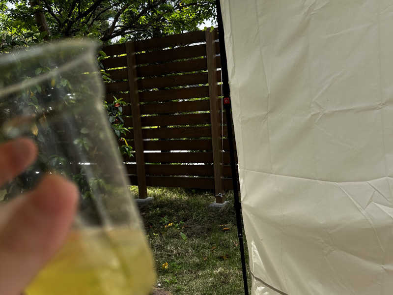 葉っぱの擦れる音や虫の鳴き声などが聴これる森の中での外気浴はまさに没入サウナです。夕朝ごはんは地元のサーモンやジビエ、山菜等の大人なサウナ飯でした。フリードリンクカウンターが常設であり、ソフトドリンクをはじめビール等お酒も自由に飲むことができます。心も体もお腹も満たさせる1泊2日でした。
