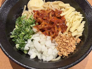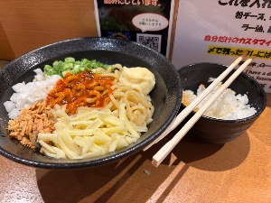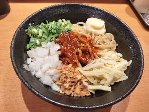 油そばっぽいけど、チーズ入ってピリ辛タレとオリジナリティのあるまぜそば。クセになる美味しさ!