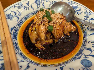 よだれ鶏のソースを餃子につけると、また美味しい