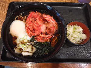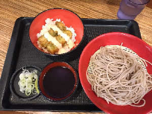 富士そば新小岩南口店の限定メニューマヨソースがニンニクが効いていて美味しい😁