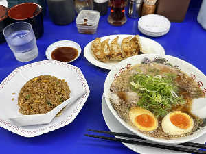 他店に比べて背脂やや少な目。スープ濃いめ。