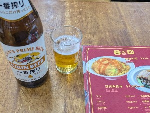 テイクアウト待ちながら瓶ビールで一杯🍺
