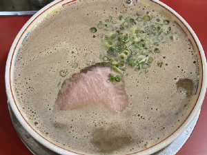 博多っぽい味でした 泡で白く見えますが泡が消えると茶色いスープです ¥850 替え玉¥150