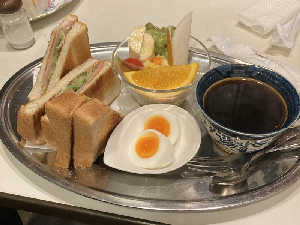 珈琲・冨士男、玉子焼きをふわふわのパンで挟んだ関西スタイルのエッグサンド。朝ウナ後のモーニングに◎