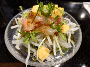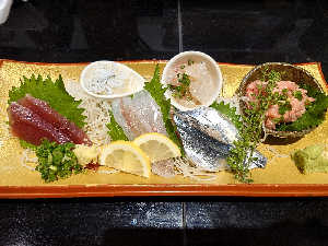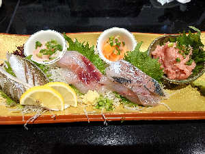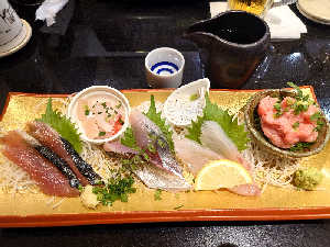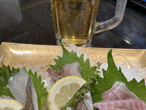 隣席のオバチャンも刺し4か...え、白ワインで刺し4?否定はせんが白身だらけではないで。