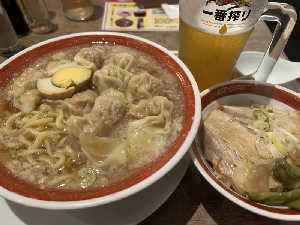 雲呑もたくさん入った細麺のラーメンは最高