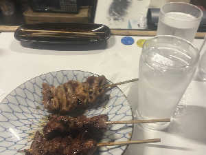 サウナ上がりのビール&焼き鳥は間違いなく優勝❗ 食べごたえある砂肝は格別👍