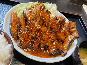 大きなトンテキにからあげ、大盛りごはん!満腹になりました。