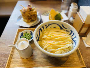 人気店。開店30分前から並ぶこと1時間。うどんはモニュっとした独特の食感。
