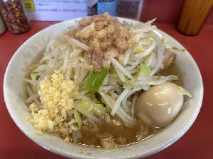 醤油味強めの非乳化スープに通常は二郎一太麺が一番細麺に変化して硬さモチモチ感は健在で汁なしも食べたい