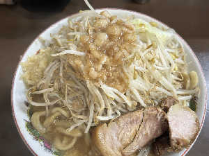ニンニク、あぶら、火の粉(別皿) 極太ワシワシ麺に濃厚スープが絡んでどストライクの味でした❗️