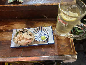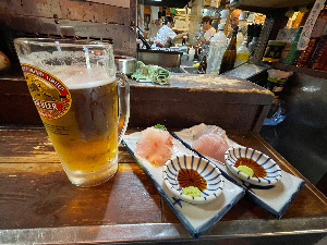 日曜日なので、魚の在庫はあまりなく、鱸と胡椒鯛をいただく。胡椒鯛、刺身だけど骨多いな、やっぱ鯛。