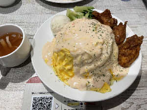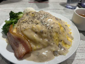 300g,キノコ香るクリームソース 肉を食べようと思ったけどオムライスの看板に引き寄せられた🍳