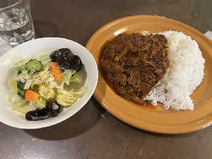 サラダが意外にボリューミー。無水のパキスタンカレー