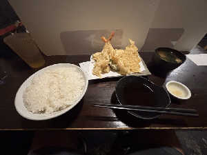 サウナ後のみそ汁美味しすぎます。 甘いタレで、海老の揚げ具合も最高‼️