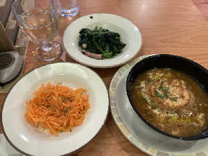 ドリアとほうれん草ソテー、蒸し鶏の香味ソースでサイゼ飲み🥃