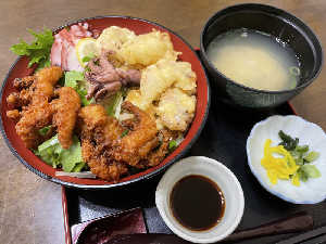 レモンポークと塩レモン鶏唐揚のどんぶり。1430円