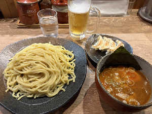 野菜たっぷりのつけ汁にしっかり腹にたまる太麺。最高!日曜日以外は翌朝4時までやってるの素晴らしい。