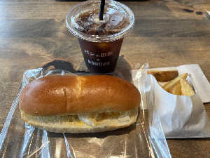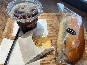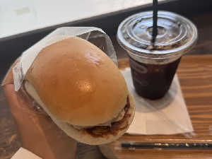 値段の割にかなり大きい!ふわふわ!コーヒーはドトールだし、ダブルチョコクリームサクサクチョコうまー