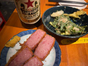 赤星とハムカツの組み合わせ最高