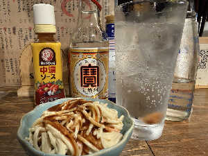 赤星はスパサラが来る前にやっつけましたので宝ソーダで流し込む。例によってソースだばぁ