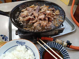 バラ焼発祥の店らしい。玉ねぎが甘くて美味しかった。