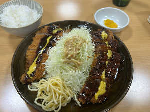 嫁はんはWミソカツ。長良のおじさんはハヤシライスにデッカイカツのっけてたよ。