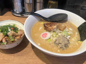 魚介ベースの豚骨スープがさっぱりでおいしかったです.