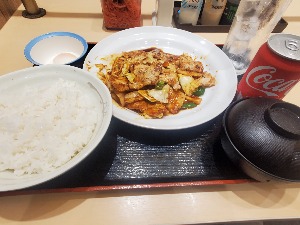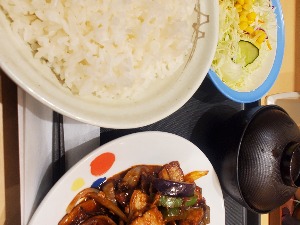 『厚切り豚カルビと茄子の辛味噌炒め定食』